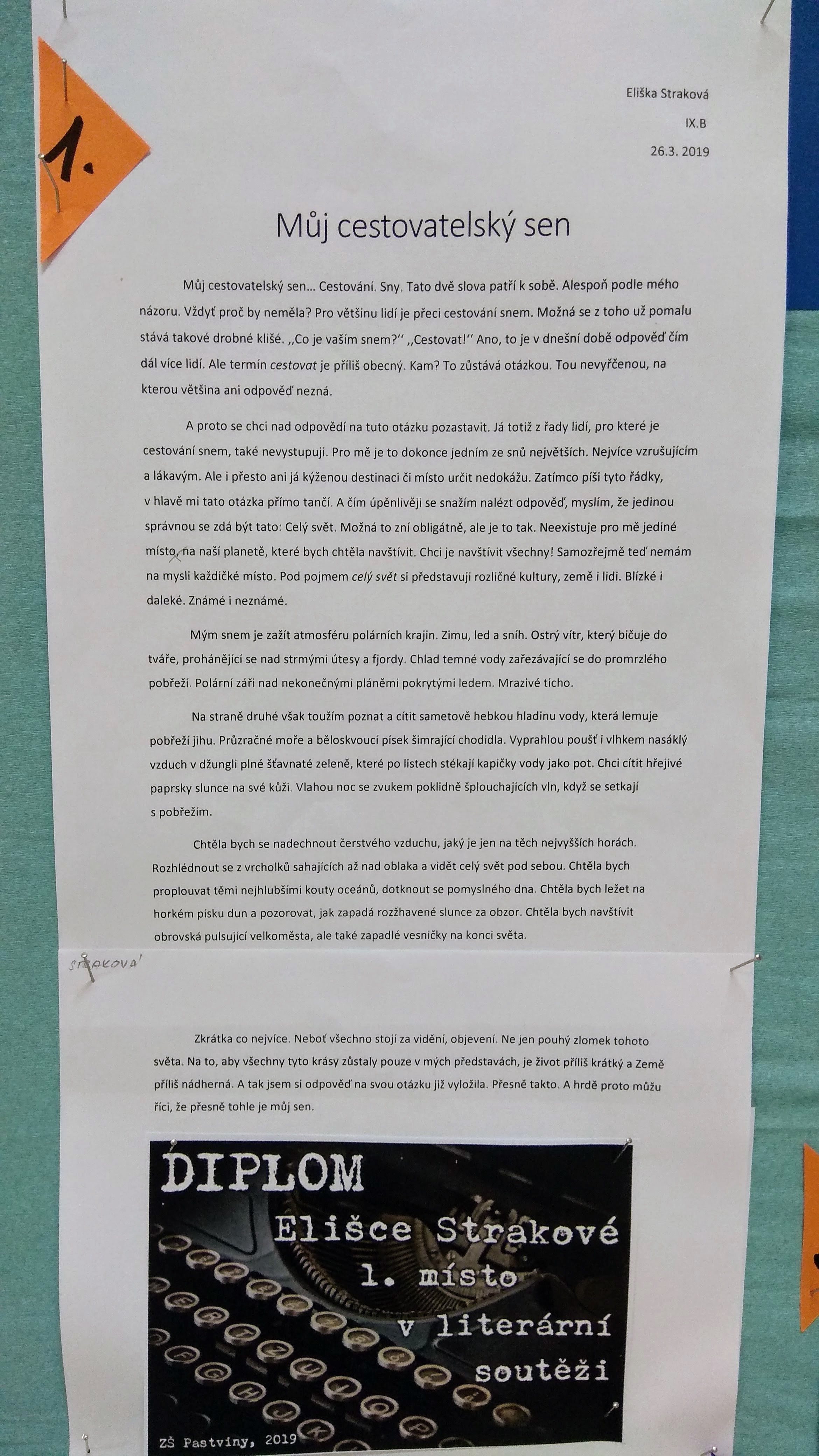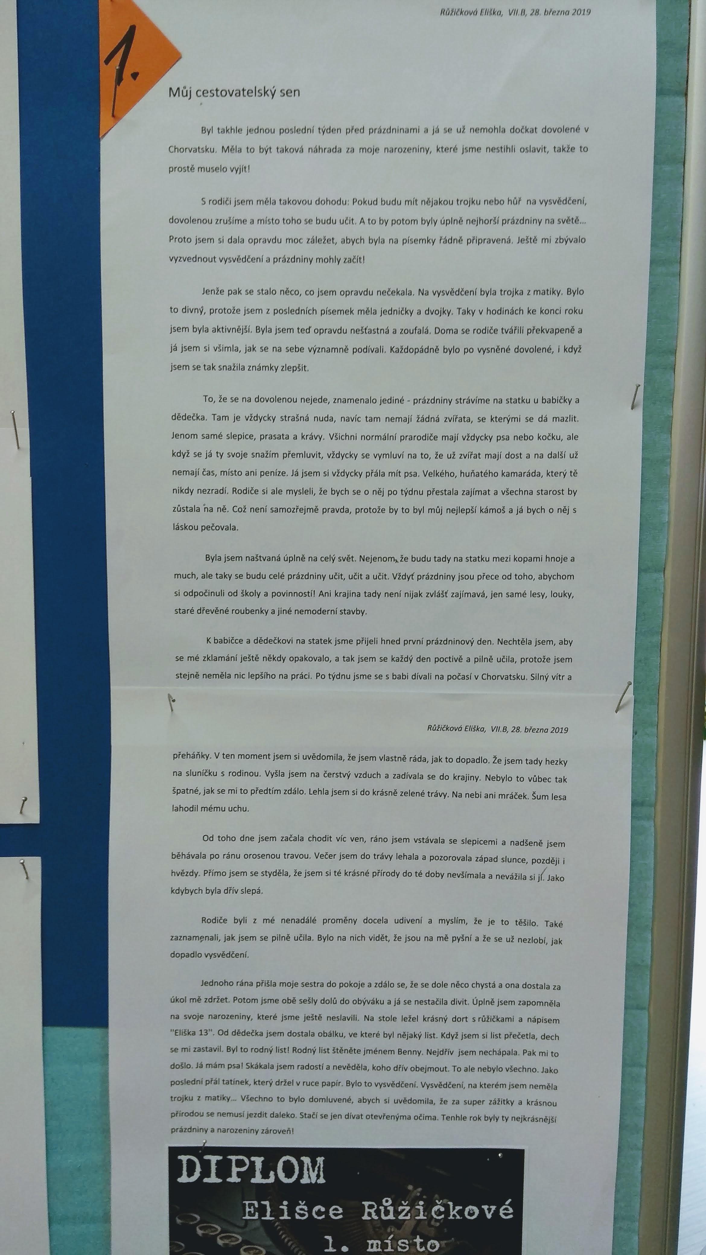 Vybrané práce vystavíme ve vestibulu školy, abyste si je mohli pročíst i vy.